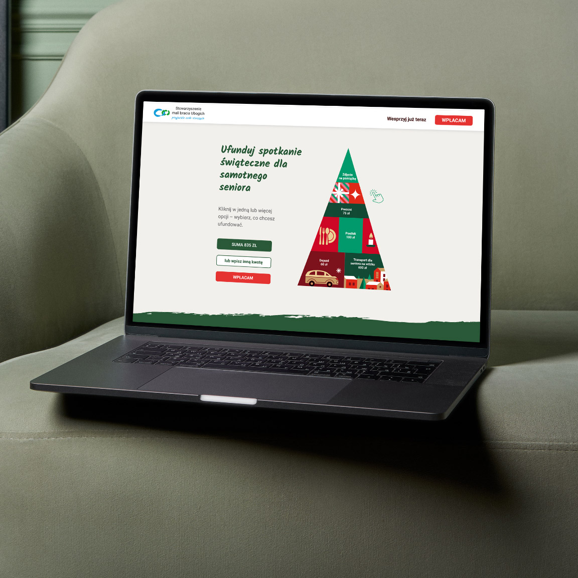 Strona zbiórki została zaprojektowana tak, by prowadzić użytkownika od emocji – do decyzji. Znalazły się tam prawdziwe imiona i zdjęcia seniorów, ich życzenia, historie, konkretne potrzeby. Darczyńca mógł wybrać formę pomocy: posiłek, prezent, dojazd. Personalizacja stała się doświadczeniem.